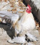 Splendides coquelets pure race Sabelpoot Porcelaine doré blanc et Porcelaine Isabelle ( poules naines d’ornement aux pattes emplumées mais race aussi bonne pondeuse et couveuse )